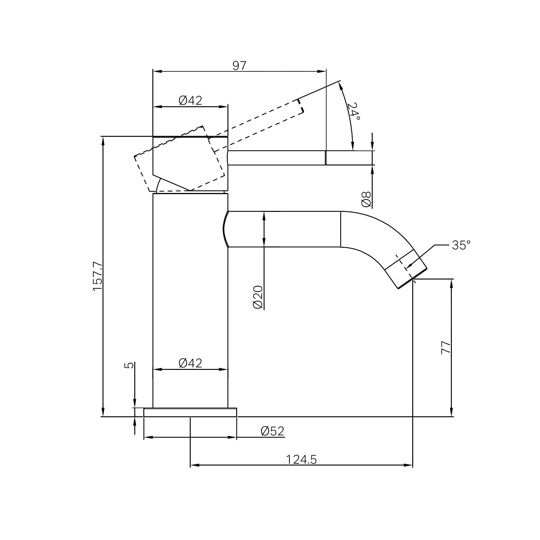 Nero Zen SS316L Basin Mixer. Made from premium 316L stainless steel. WELS 6 Star rated at 4.5L/min. Registration T43199. SKU: NR162201GR