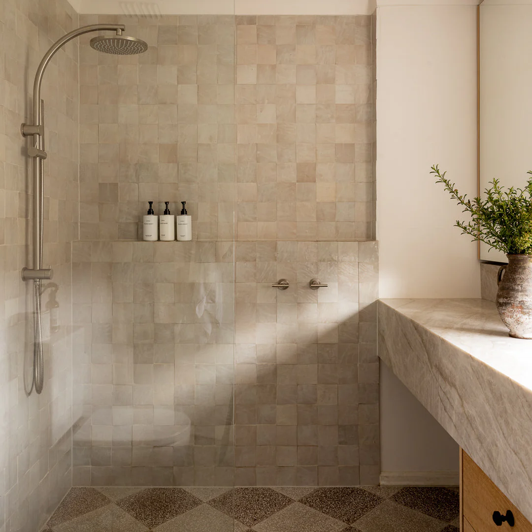 Authentic Moroccan tiles, 100% hand-crafted based on centuries of tradition. Characterised by unique irregularities and imperfections. Available in 26 stunning colours including Albus White, Sage, Emerald, Aquamarine, Blue Moon and more.