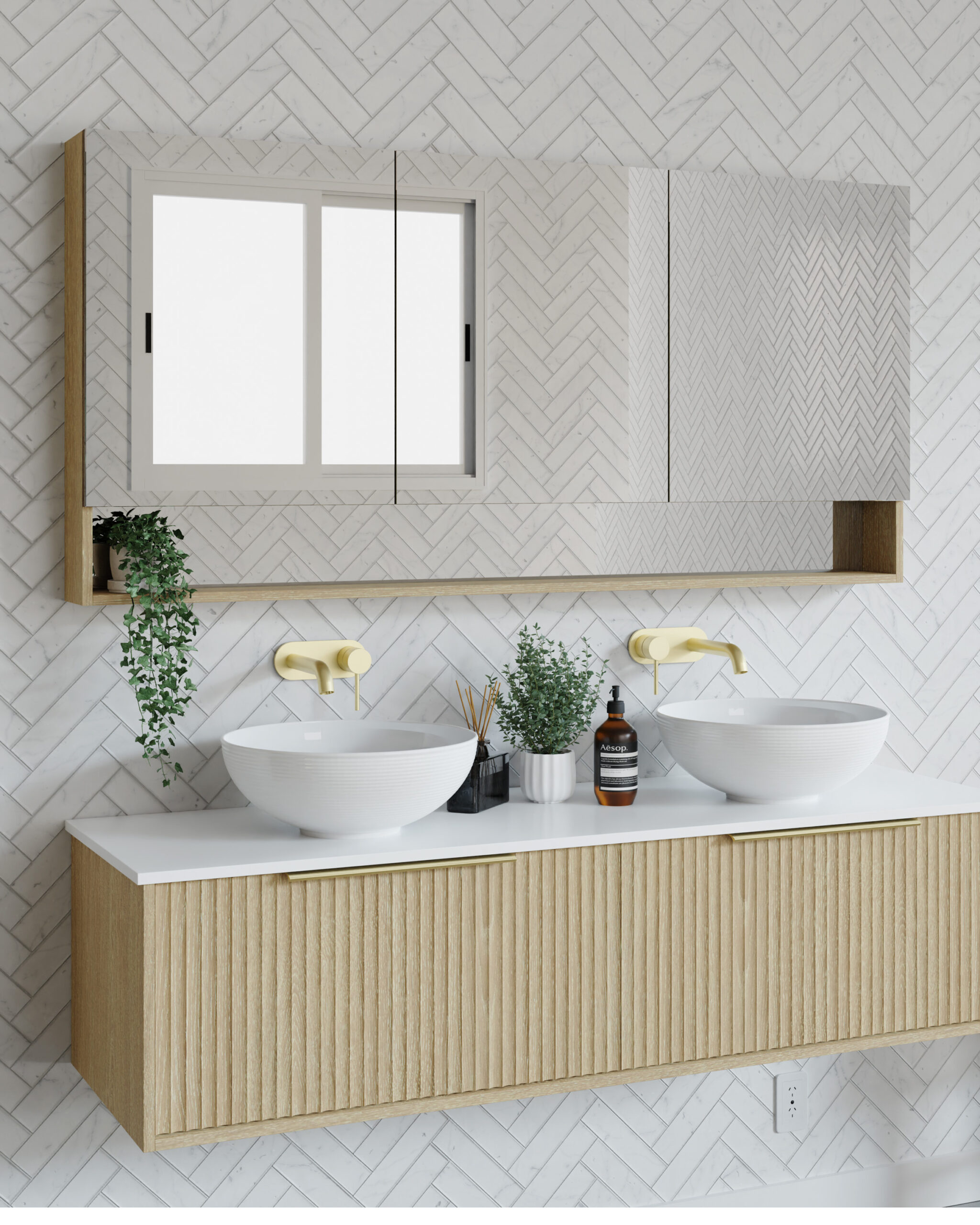 Watson shaving cabinet with clean rectangular form, soft-close doors, adjustable glass shelves, and multiple finish options.
