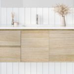 Classic style routed vanity with the luxury of all-drawers, available in custom painted finishes with integrated tops or slab options. 10-year warranty.